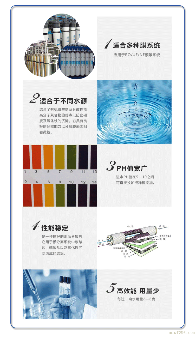 加药量:所需要的加药量根据个别装置操作条件确定,要根据进水盐度、温度、回收率、反渗透膜种类等条件而计算出一个合适的加药量,推荐加药量为2-6PPM。