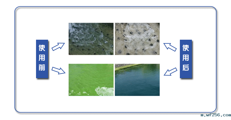 采用冲击式加药,投加量一般为 100-200mg/L,即对菌藻类有杀灭效果。藻类较多时如欲获得快速剥离效果可适当加大用药量,并及时清除漂浮物。
