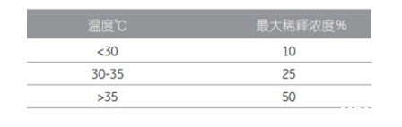 稀释-稀释浓度与温度的关系如下: